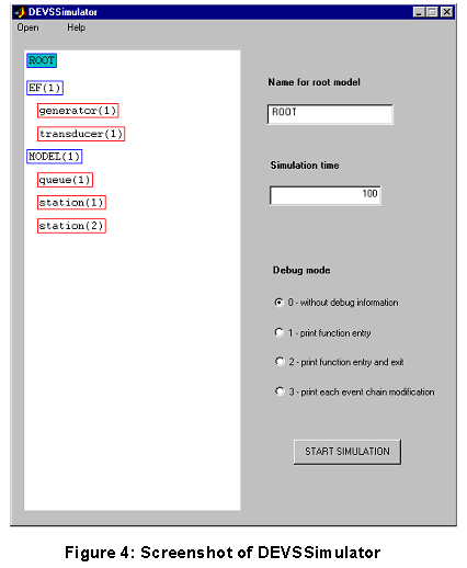 • A GUI for starting a simulation run (DEVSSimulator),