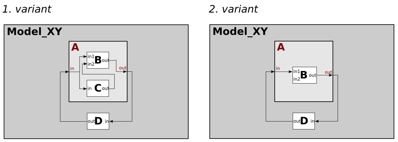 This example shows, how you can describe different model structures in a single SES by using Aspect Siblings. The example SES specifies two alternative model structures (variants).